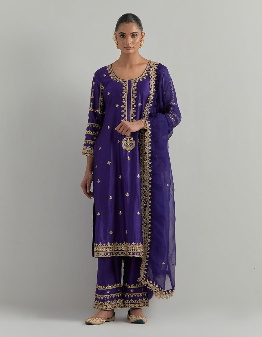 Purple Hand Embroidered Chanderi Suit Set