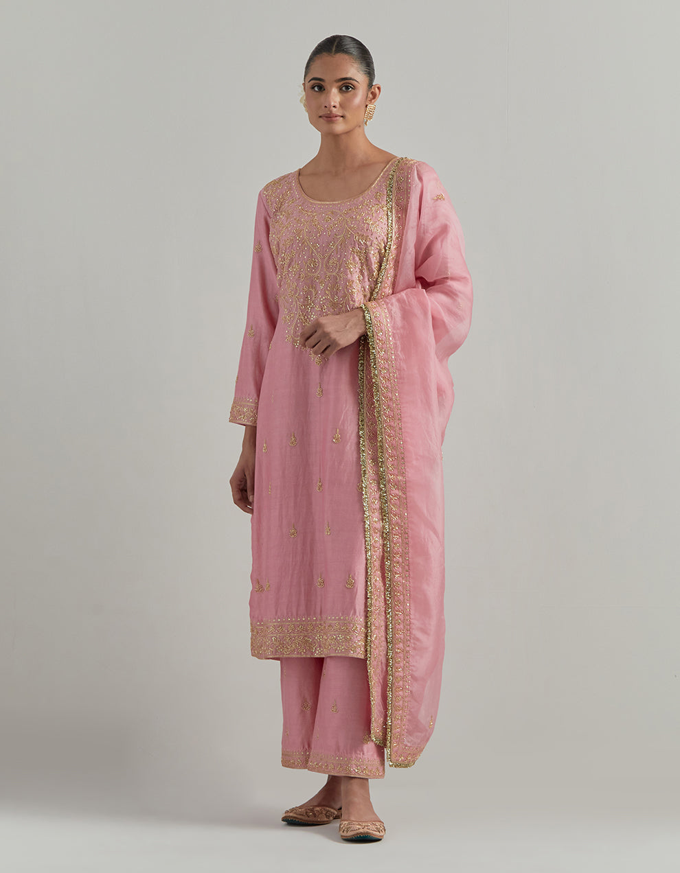 Dust Pink Embroidered Chanderi Silk Garara Set